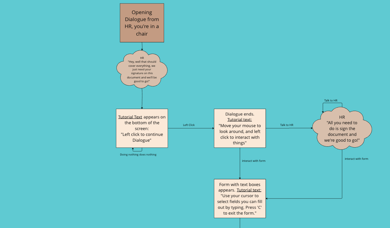 The simple way I have been planning the functionality of our game is with flowcharts, diagrams that show all of the options the player has. As I plan out the logic of the game, inevitably I run into challenges.