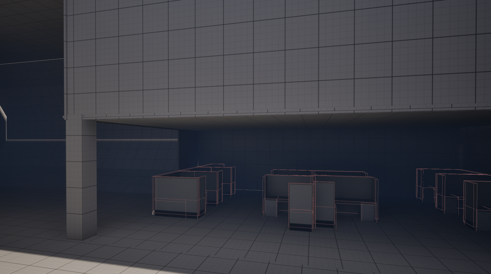 Forcing the player to go out of their way to see certain cubicles can create more interest. The lower ceiling pictured above gives the player a more narrow view, and feels more claustraphobic. Don't you wonder if anything is tucked away behind those cubicles?