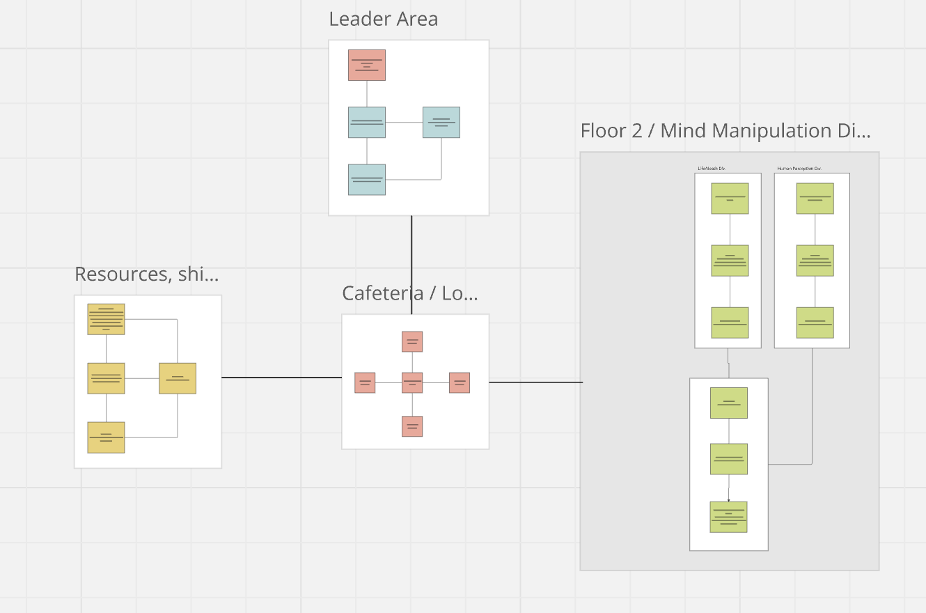 Normally people make maps based on space. What a lame system. Since I just wanted plot out what places exist in our game and how they're connected, a while ago I graphed the areas and their connections. This week, I revisted that graph, and am in the process of updating it.